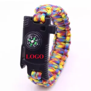 This Tactical Whistle is in paracord bracelet. This 5-IN-1 Paracord Bracelet with Compass Survival Military Whistle are made of PU leather, alloy and paracord, with compass, which helps in survival military scenes.