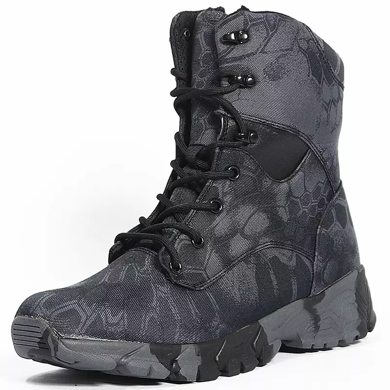 Anti-slip Anti-kick Tactical Boots is python boots style. Their upper is made of oxford cloth, with lining mesh, rubber outsole and cement construction.