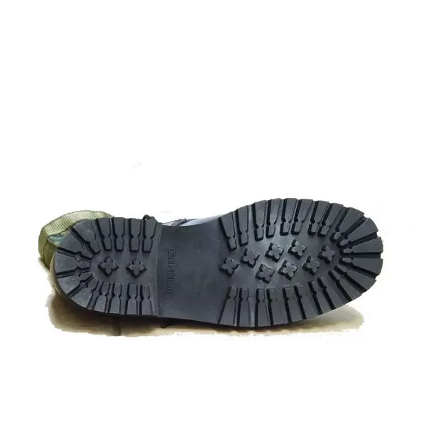 Upper: Split layer cow leather, green camouflage canvas