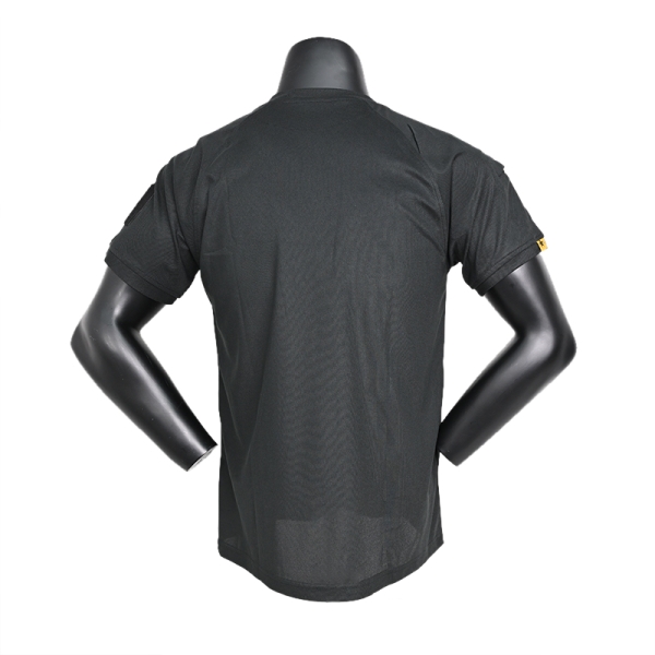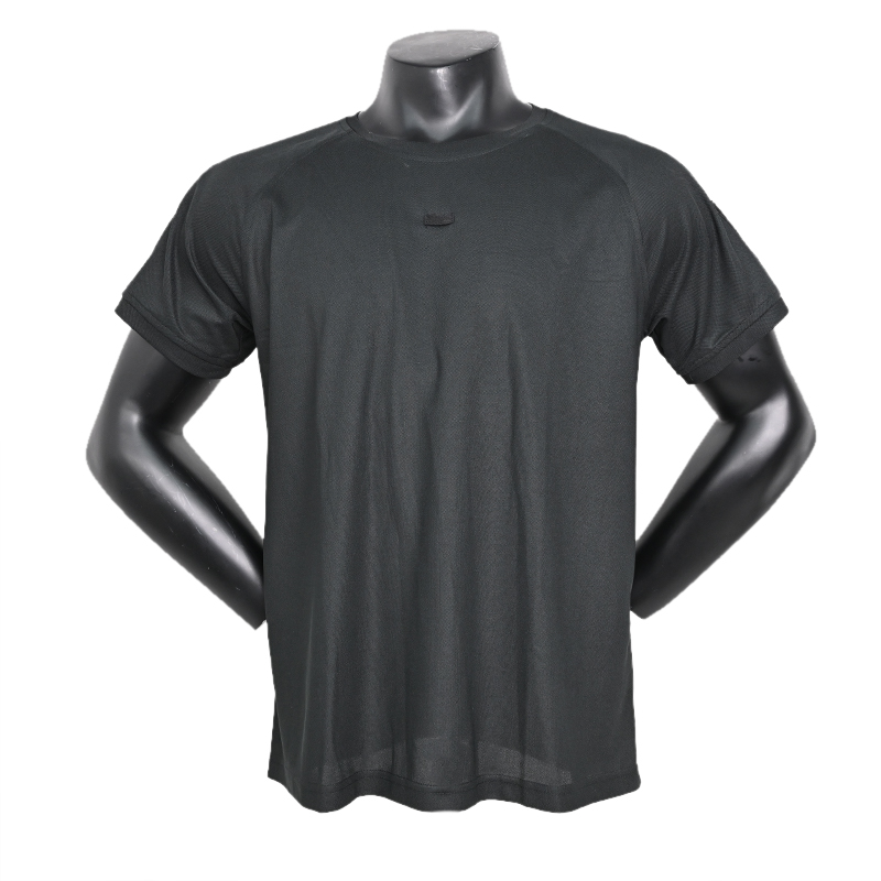 Polyester Velcro Round Collar Quick Dry Black T-Shirt