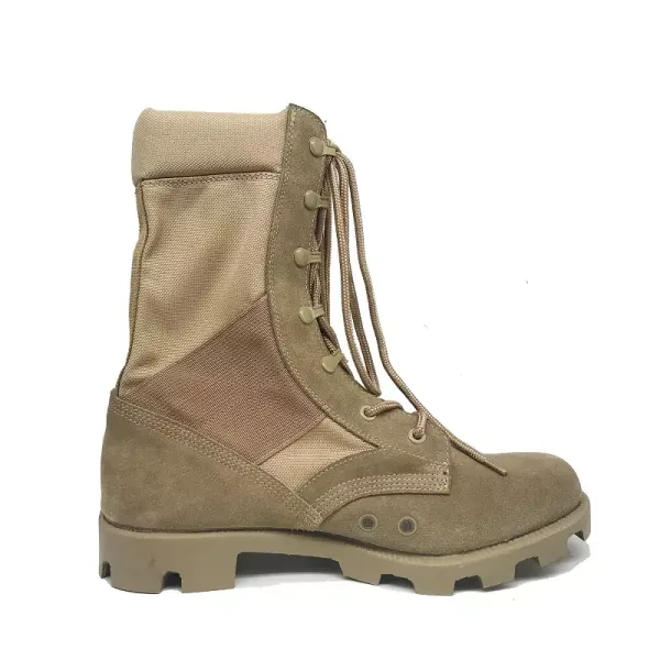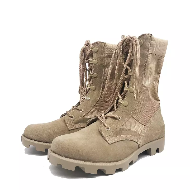Sand Color Genuine Nubuck Leather And Canvas Desert Combat Boots For Men